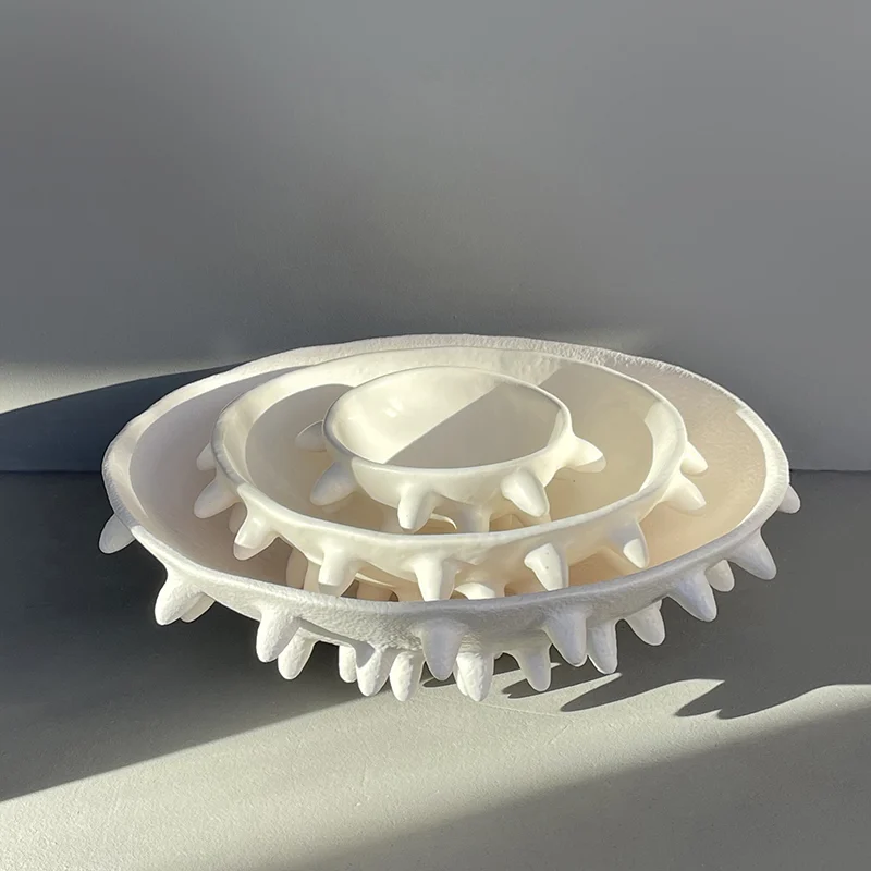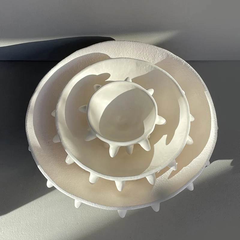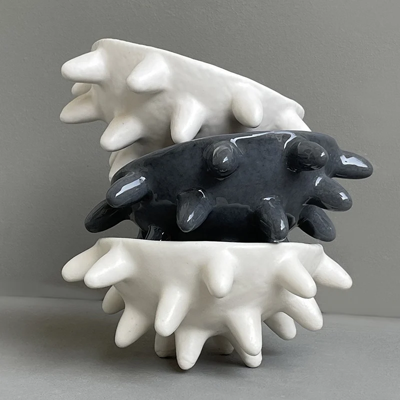 This artistic handmade ceramic bowl is available in three versatile sizes (13 cm, 25 cm, and 37 cm in diameter) and three distinctive colors: