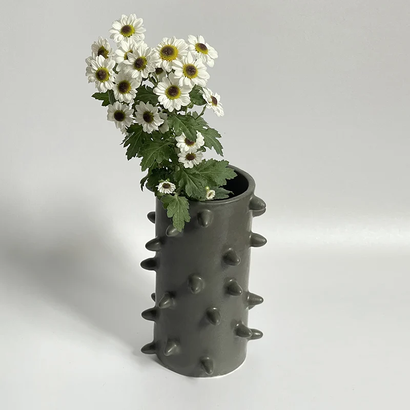 This artistic ceramic vase, with a diameter of 11 cm and a height of 22 cm, is thoughtfully designed to suit both interior decoration and displaying natural or artificial flowers. The Cornuta Vase is available in two minimalist and captivating colors: