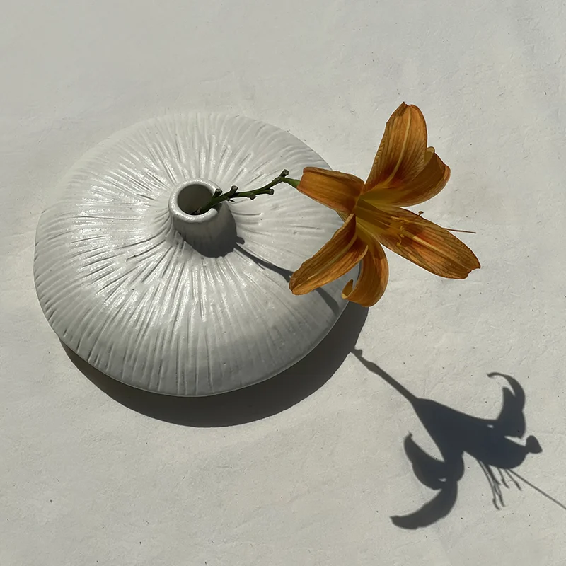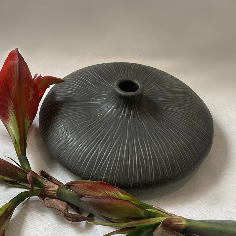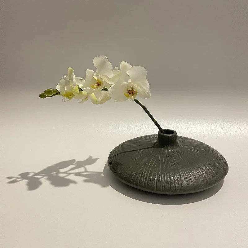 This unique handmade ceramic vase inspired by nature, with a diameter of 21 cm and a height of 7 cm, is thoughtfully designed to complement modern and minimalist spaces. Available in two stunning matte finishes—white matte and black matte—the Inari Vase is a versatile addition to any interior décor.
